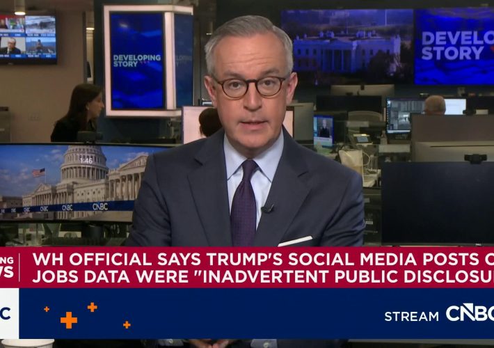 President Donald Trump in a social media post Thursday evening indirectly revealed data from Friday’s market-moving nonfarm payrolls count, an apparent violation of long-standing federal policy...