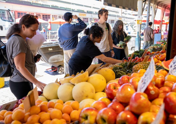 Shoppers look at fruit for sale at Frank’s Quality Produce Co. at Pike Place Market in Seattle, Washington, US, on Wednesday, May 28, 2025. M. Scott...
