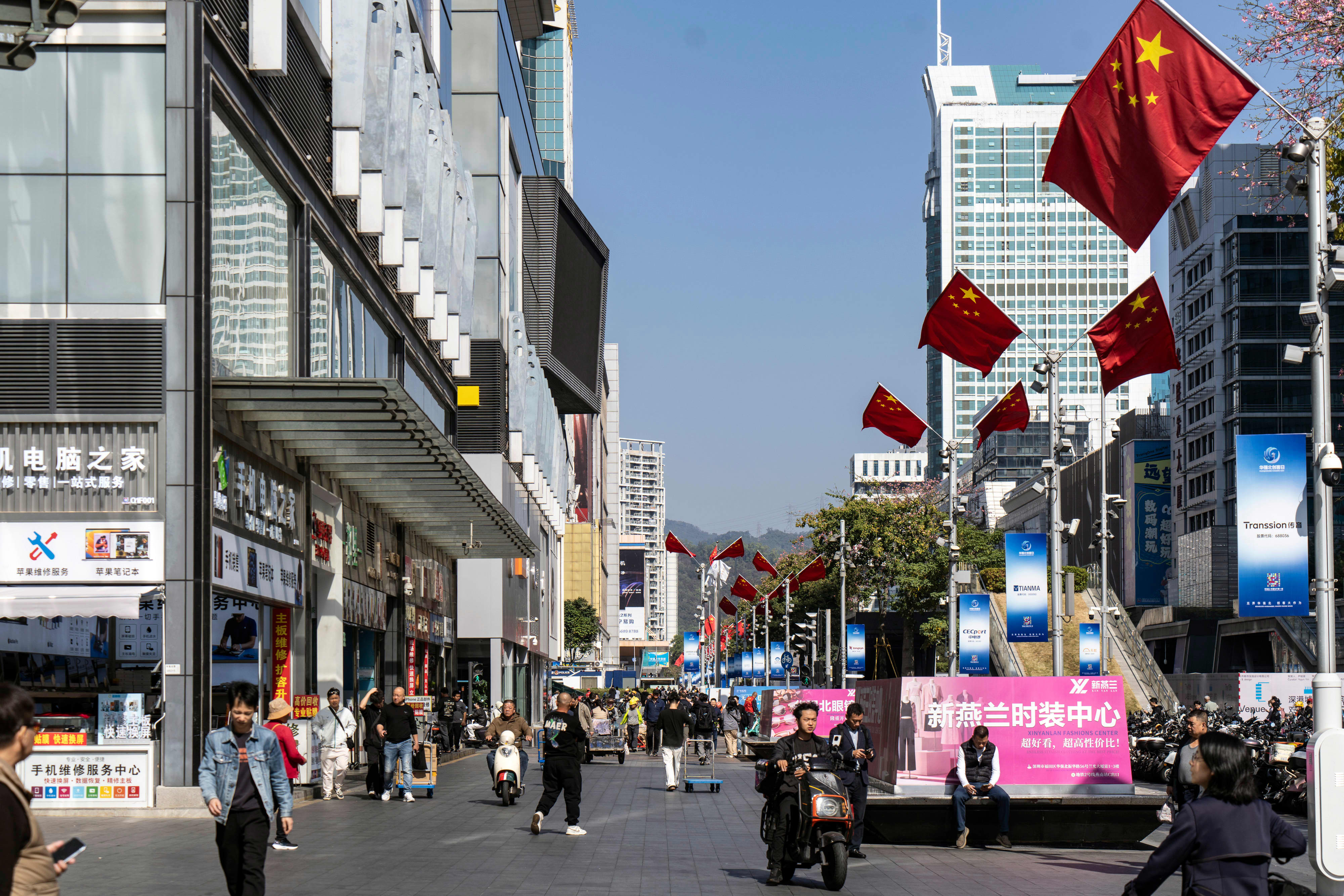 Pedestrians in the Huaqiangbei electronics market area in Shenzhen, China, on Wednesday, Jan. 14, 2026.