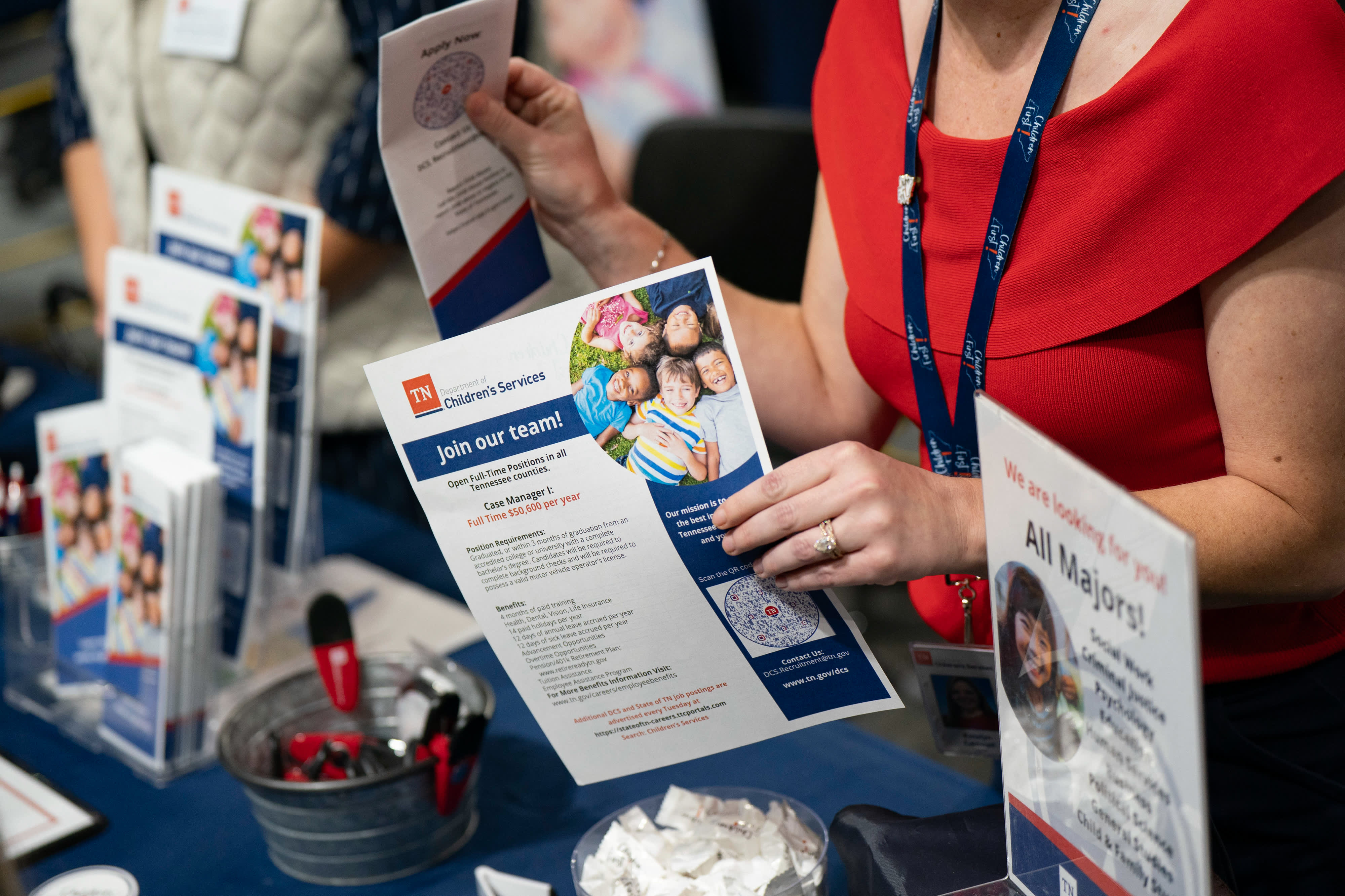A “Join Our Team” flyer at the Appalachian State University internship and job fair in Boone, North Carolina, US, on Wednesday, Oct. 1, 2025.